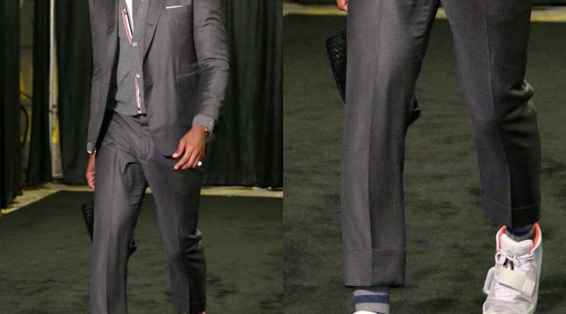 Tristan Thompson 仲著返對 Nike Air Yeezy 2 ”Platinum” 襯西裝;