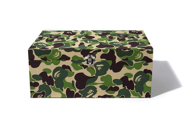 錦盒外觀飾以BAPE®經典ABC綠迷彩圖案,內含精緻設計的紫砂茶壺和紫砂茶杯。茶壺和茶杯表面均印有「APE HEAD」猿人頭圖案和「猿人不打猿人」漢字標語,外觀精美而又別具古樸韻味,精湛工藝詮釋潮流與傳統的完美交融,極富收藏價值。