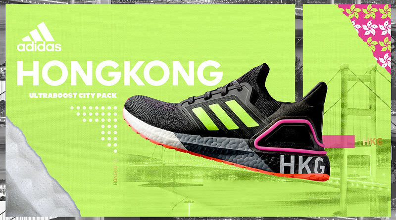 adidas Running推出全新 UltraBOOST 20 City Pack系列「HKG」隆重登場。香港區限定配色以香港招牌的五光十色霓虹燈街景作主題;採用Tailored Fiber Placement 技術打造的黑色Primeknit鞋面綴上螢光色三間搭配紫紅色3D後跟支架與螢光橙外底,豐富的色彩元素完美詮釋香港的夜景風貌,黑、白、灰拼接的Color BOOST™中底印上「HKG」區名縮寫,為鼓勵香港人跑出自我的信念。