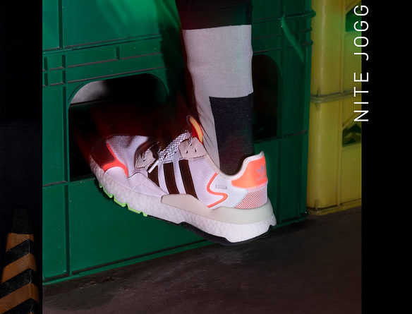全新推出的Nite Jogger以白拼紅色登場,鞋身以尼龍物料配上麂皮及網眼構成,中底搭載品牌專利BOOSTTM技術,沿用反光技術打造鞋身、鞋頭、鞋舌等細節,展示前衛時尚魅力。